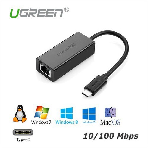 Dây Cáp Mạng USB 2.0 Type-C To Ethernet Ugreen 30287 (10/100Mbps) - Đen với thiết kế gọn nhẹ, tốc độ truyền khá cao gần 500Mbps, tương thích với một số thiết bị như máy tính với đầu USB Type C chuẩn 3.1 hay với các sản phẩm có cổng USB Type B như máy in, máy mã vạch, máy quét...Đầu cáp tương thích với một số dòng thiết bị như Macbook, Chromebook Pixel và thiết bị có cổng kết nối là USB Type C.