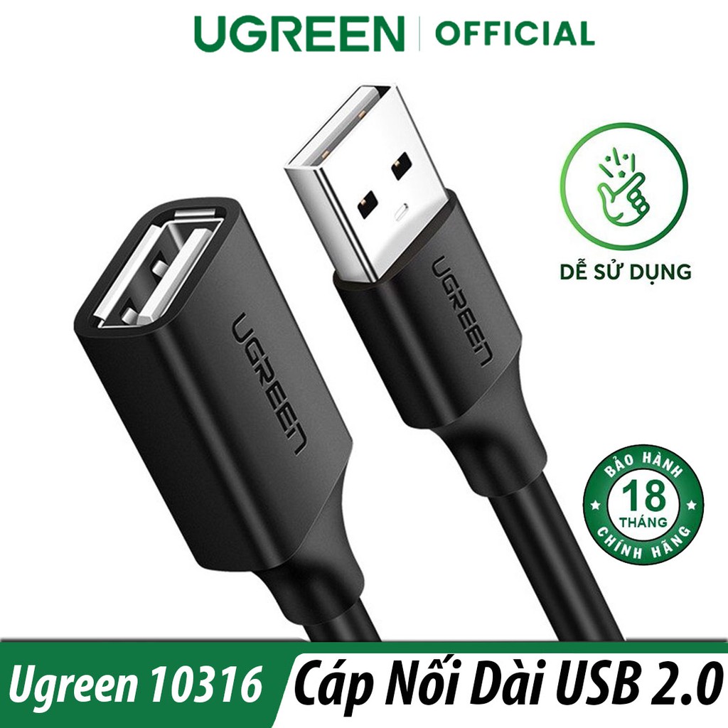 Giới thiệu Cáp Chuyển USB 2.0 Dài 2M Ugreen 10316 Chính Hãng