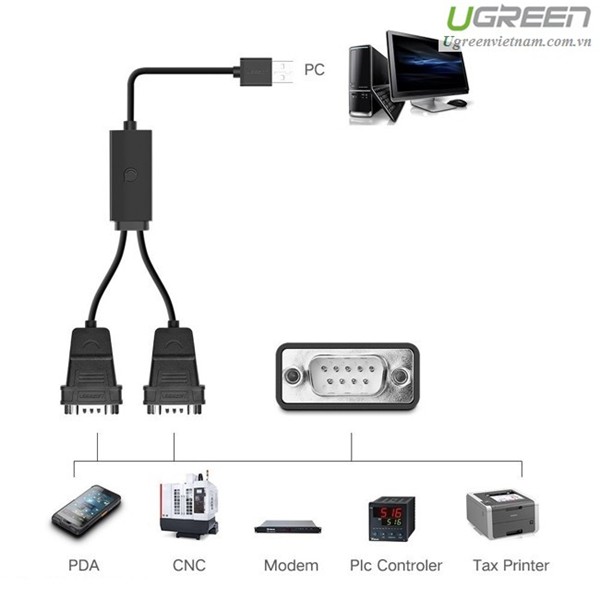 Máy tính & Laptop > Thiết Bị Lưu Trữ > USB & OTG || Cáp Chuyển USB 2.O Sang 2 RS 232 (USB TO 2 COM) Ugreen 30769 Chính HãngCòn hàng