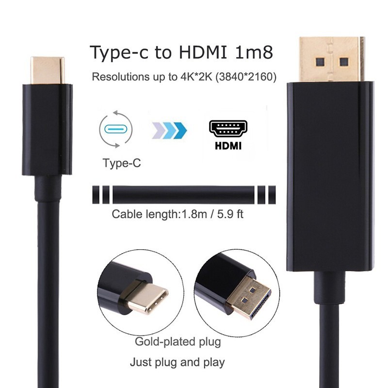 Cáp chuyển usb Type-c ra HDMI dài 1m8 cho Macbook, Surface, Dell, Samsung