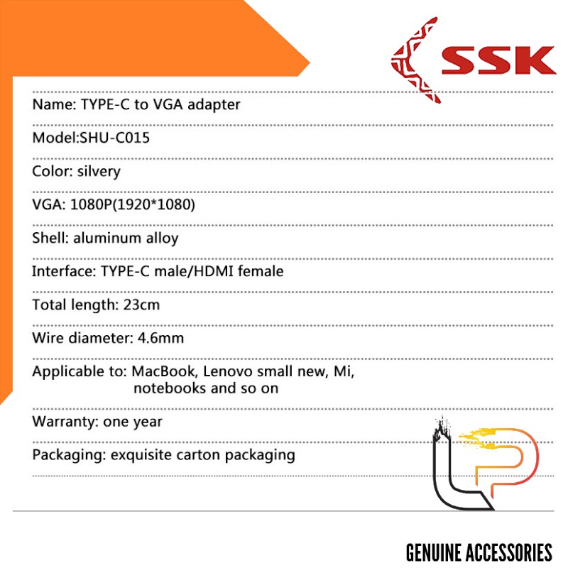 THÔNG TIN SẢN PHẨMCÁP TYPE-C -> VGA SSK (SHU-C015)