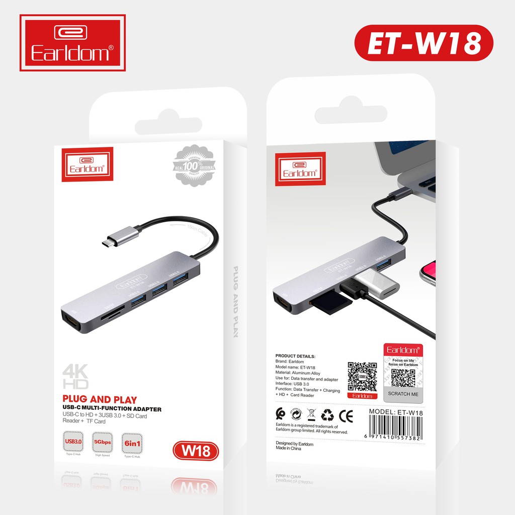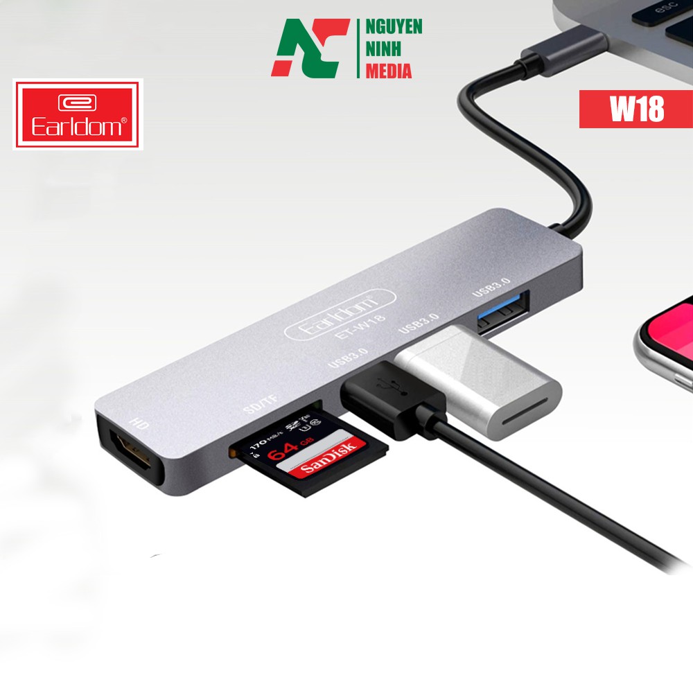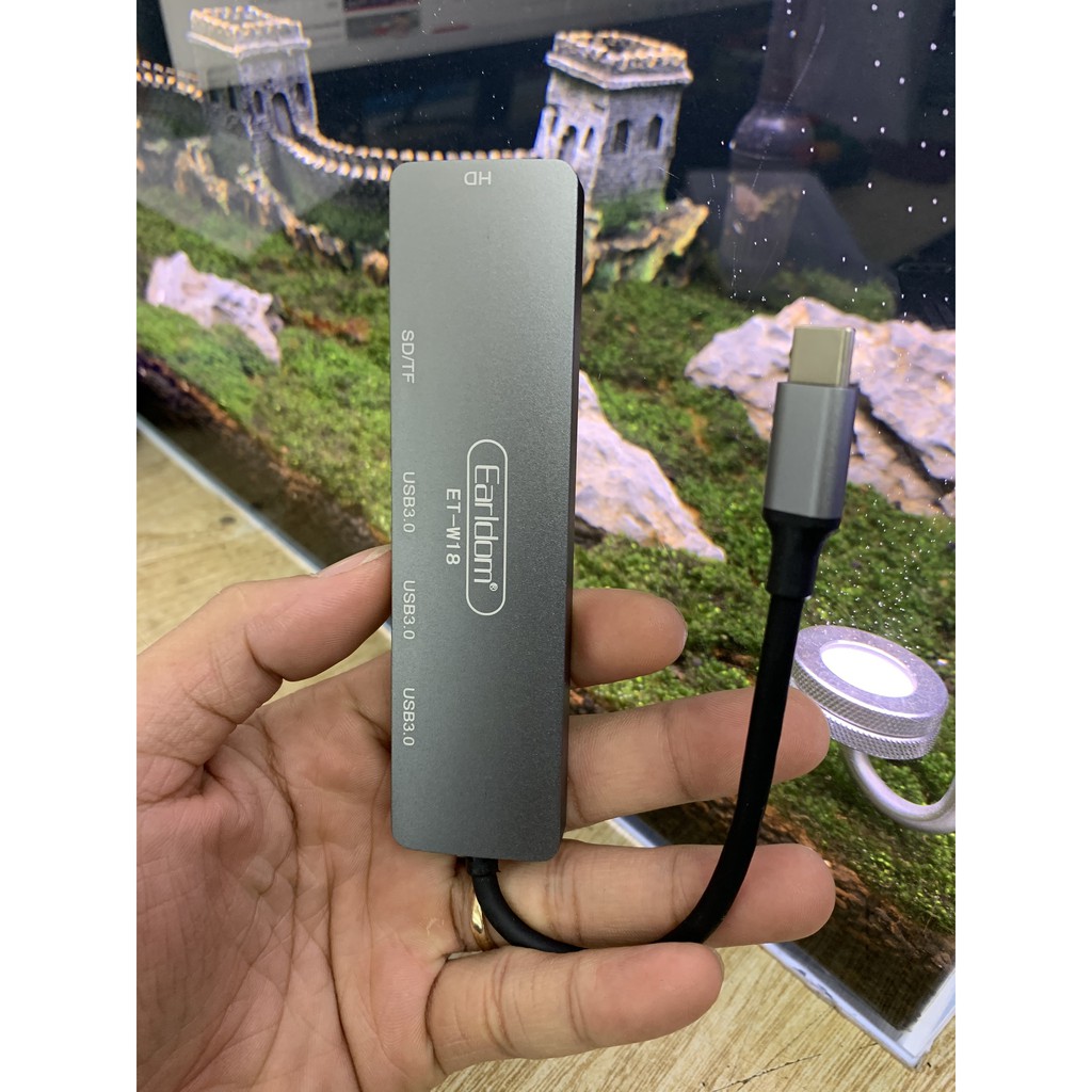 Máy tính & Laptop > Phụ Kiện Máy Tính > Bộ chia cổng USB & Đọc thẻ nhớ || Cáp Chuyển USB Type C to HDMI + 3 USB 3.0 + SD Card Reader + TF Card Earldom W18 - Hàng Chính HãngCòn hàng