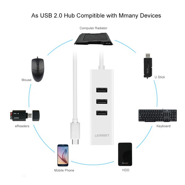 Các thiết bị ngoại vi như chuột, bàn phím… thông thường trên thị trường hiện nay sử dụng cổng giao tiếp USB.Cáp chuyển usb to lan chuẩn C UGREEN 20792 được thiết kế mở rộng thêm 3 cổng USB 2.0 cho bạn có thể sử dụng đồng thời cùng lúc nhiều thiết bị khác để kết nối với máy macbook với tốc độ lên tới 480mbp mà không làm ảnh hưởng tới tín hiệu đường truyền