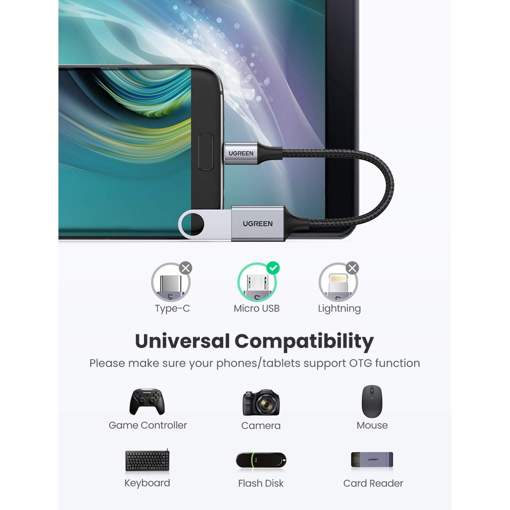 Máy tính & Laptop > Thiết Bị Lưu Trữ > USB & OTG || Cáp chuyển USB2.0 sang Micro USB 2.0 hỗ trợ OTG UGREEN 30895 - Hàng phân phối chính hãng - Bảo hành 18 thángCòn hàng