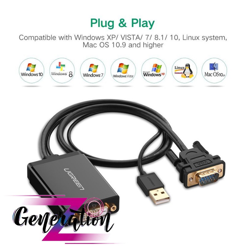 Cáp Chuyển VGA Sang DVI-D 24+1 Cao Cấp Ugreen 30839Cáp chuyển đổi VGA sang DVI-D 24+1 cung cấp cho bạn giải pháp thuận tiện nhất để kết nối PC, máy tính xách tay, card màn hình chuẩn VGA (D-Sub) với độ phân giải hỗ trợ tối đa lên đến 1920x1080P@60Hz và tương thích ngược với các độ phân giải thấp hơn. Cáp VGA sang DVI 24+1 Ugreen 30839 tương thích tốt với mọi thiết bị, cắm là nhận mà không cần cài đặt driver.