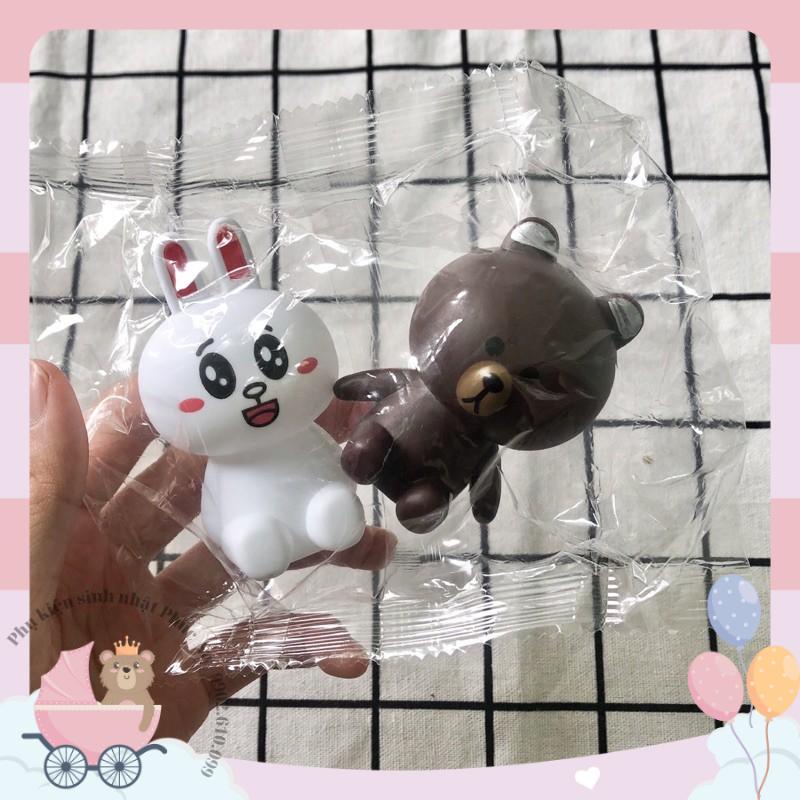 Cặp gấu nâu thỏ trắng mini dễ thương trang trí hpbd