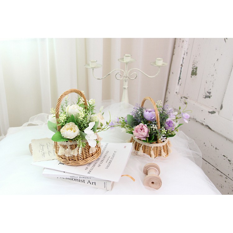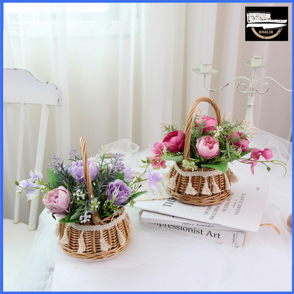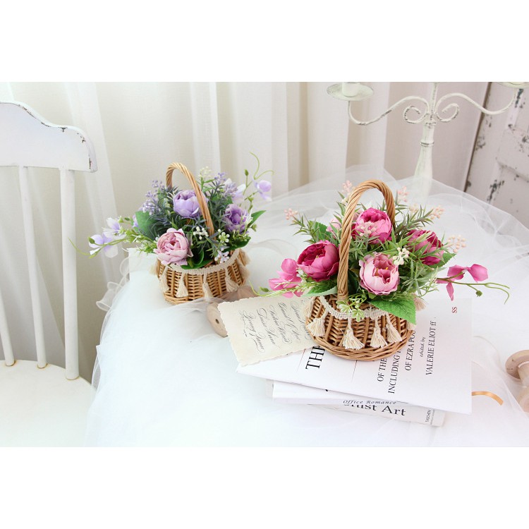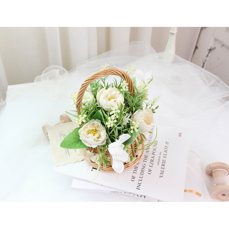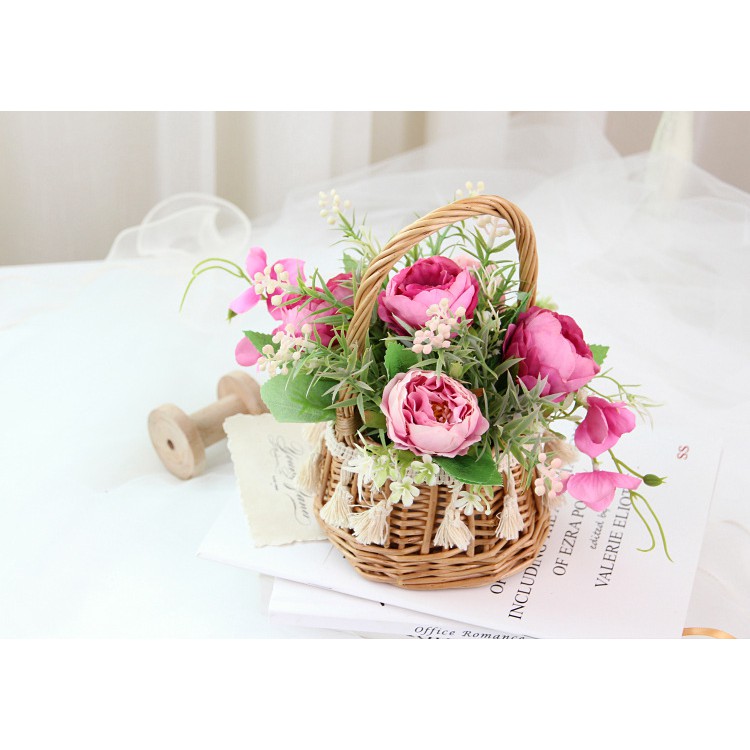 Giỏ Hoa giả trang trí để bàn đẹp, cute, hoa mẫu đơn KhalikModel: HF017