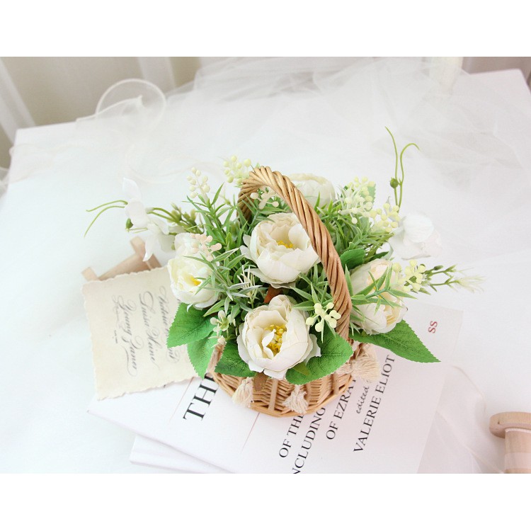 Giới thiệu [Cao cấp] Lẵng hoa mẫu đơn chất lượng cao phong cách Bắc Âu trang trí nhà bàn làm việc