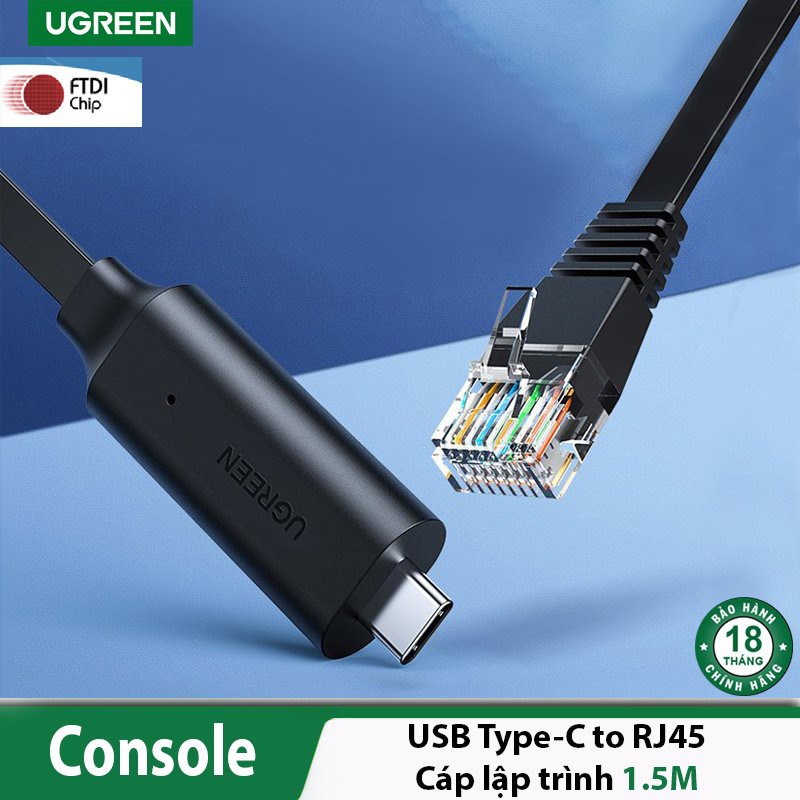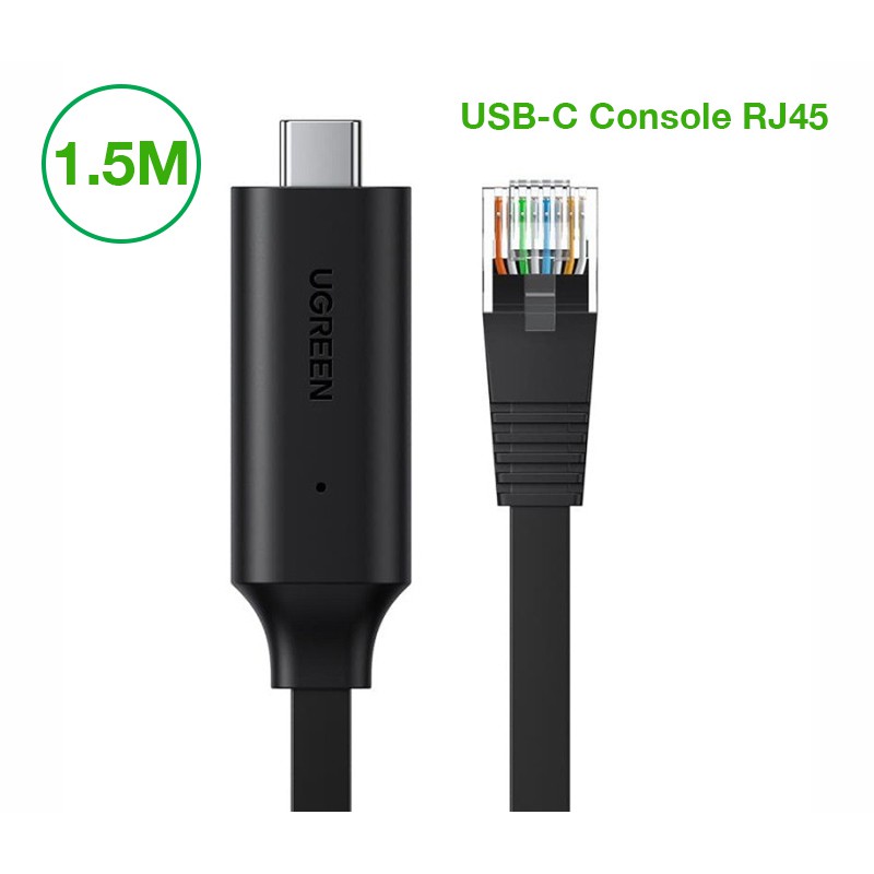 Cáp lập trình Console Type-C to RJ45 Ugreen 80186 Chính Hãng (chipset FTDI,dài 1.5met) Cao Cấp màu đen
