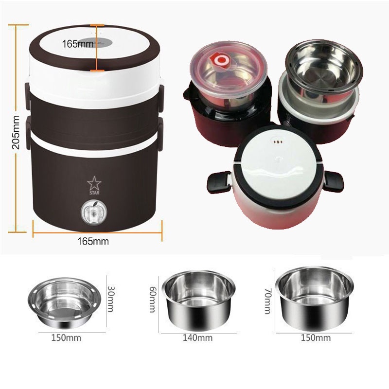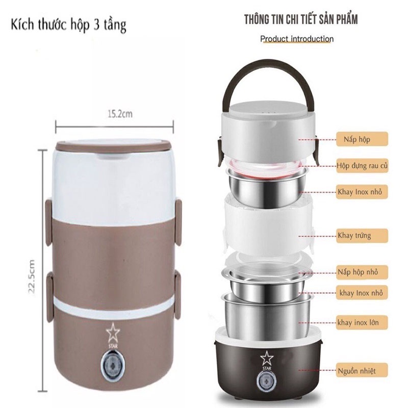 Cặp Lồng Cắm Điện 3 Tầng ruột inox Cao Cấp Giữ Nóng Thức Ăn Liên Tục