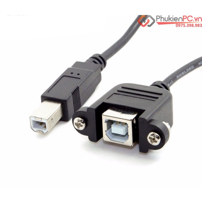 Dây cáp USB 2.0 Type B Male to Female (đực sang cái, BM-BF) thiết kế dạng đầu bắt ốc vít. Sử dụng nối dài cáp tín hiệu máy in Printer, thiết bị lưu trữ hdd docking, hdd box, máy móc công nghiệp, máy lập trình…Sản phẩm giúp bạn dễ dàng lắp đặt thiết bị, bảo vệ đầu cáp USB 2.0 Type B trên thiết bị, di dây ngọn gàng, lắp đặt thiết bị nơi đặc biệt: tủ rack, hộp kỹ thuật chuyên dụng…