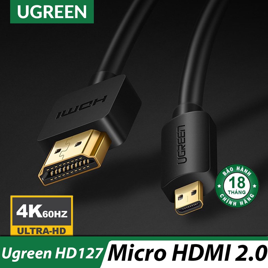 Giới thiệu Cáp Micro HDMI ra HDMI 2.0 4K*60Hz Cao Cấp UGREEN HD127 - Hàng Chính Hãng, Bảo Hành 18 Tháng Đổi Mới
