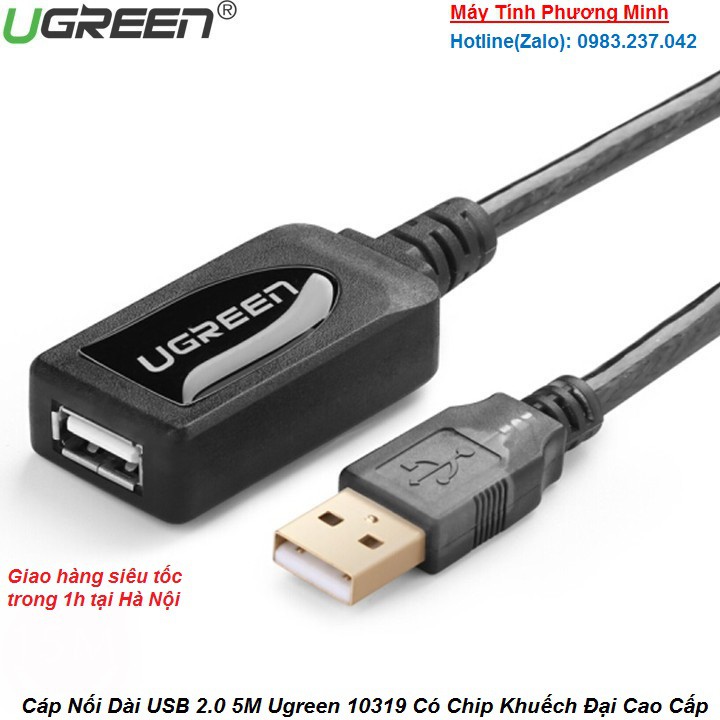 Máy tính & Laptop > Thiết Bị Lưu Trữ > USB & OTG || Cáp Nối Dài USB 2.0 5M Ugreen 10319 Có Chip Khuếch Đại Cao Cấp- Bảo hành chính hãng 18 thángCòn hàng