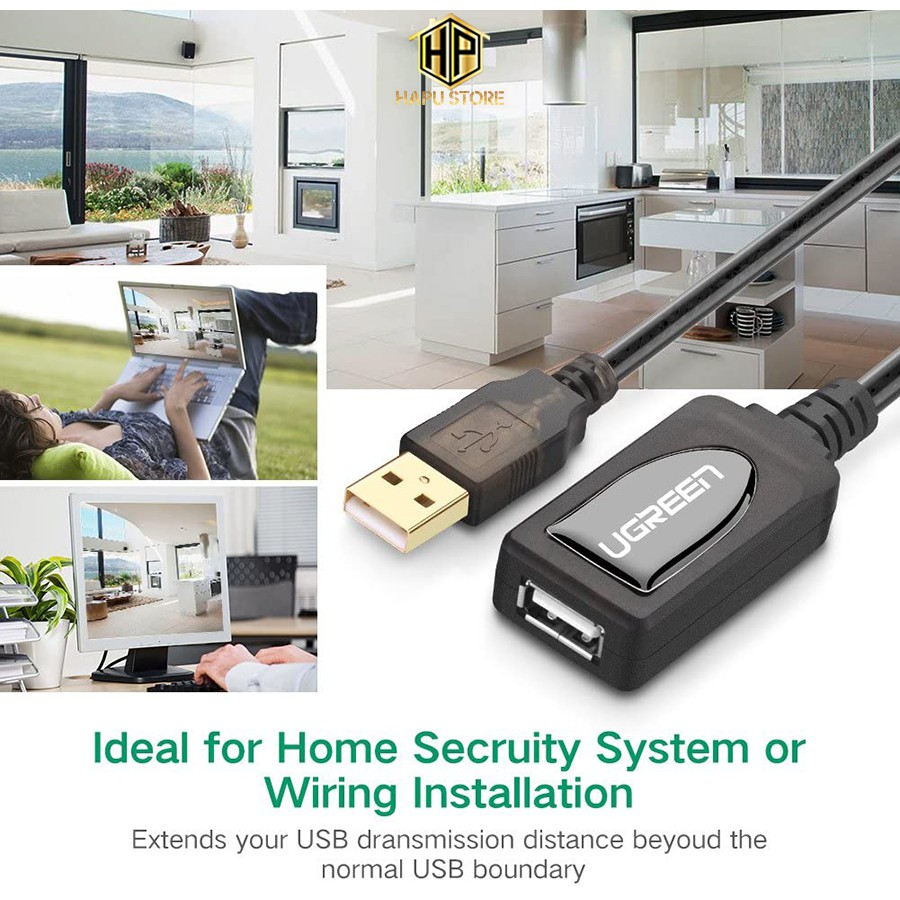 Giới thiệu Cáp nối dài USB Ugreen 10323 chuẩn USB 2.0 dài 15m chính hãng - Hapustore