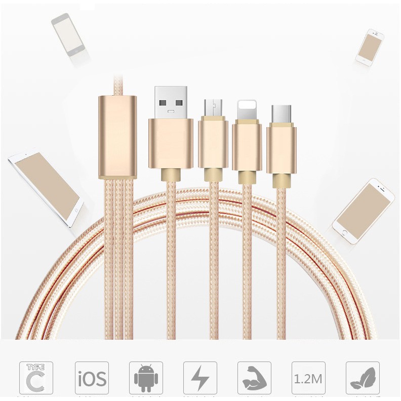 Cáp Sạc 3 Đầu - Dây Sạc Đầu 3 iphone/Type C/Lightning -Đa Năng - Chất Liệu Vải Dù Chắc Chắn, Đầu Chống Gãy Gập -Siêu Bền