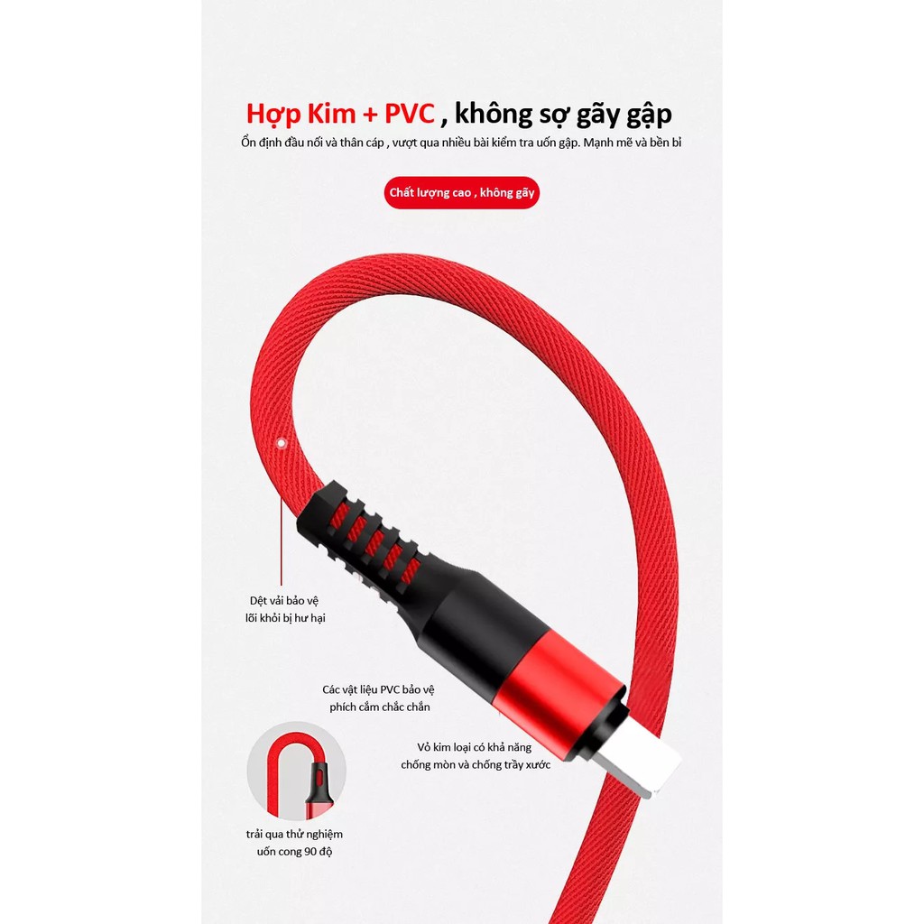 Giới thiệu Cáp Sạc 3 Đầu - Dây Sạc Đầu 3 iphone/Type C/Lightning -Đa Năng - Chất Liệu Vải Dù Chắc Chắn, Đầu Chống Gãy Gập -Siêu Bền