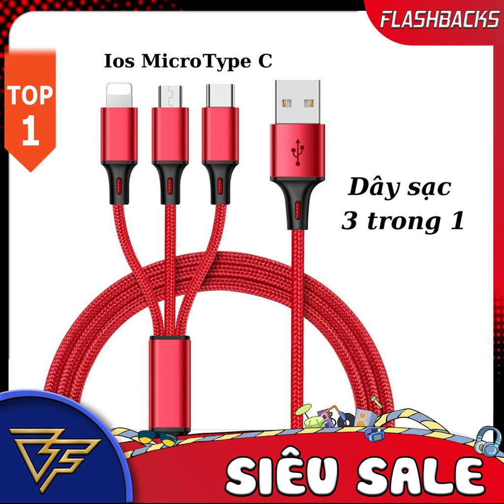 Điện Thoại & Phụ Kiện > Phụ kiện > Cáp, sạc & bộ chuyển đổi > Cáp & Bộ chuyển đổi di động || Cáp Sạc 3 Đầu - Dây Sạc Đầu 3 iphone/Type C/Lightning -Đa Năng - Chất Liệu Vải Dù Chắc Chắn, Đầu Chống Gãy Gập -Siêu BềnCòn hàng
