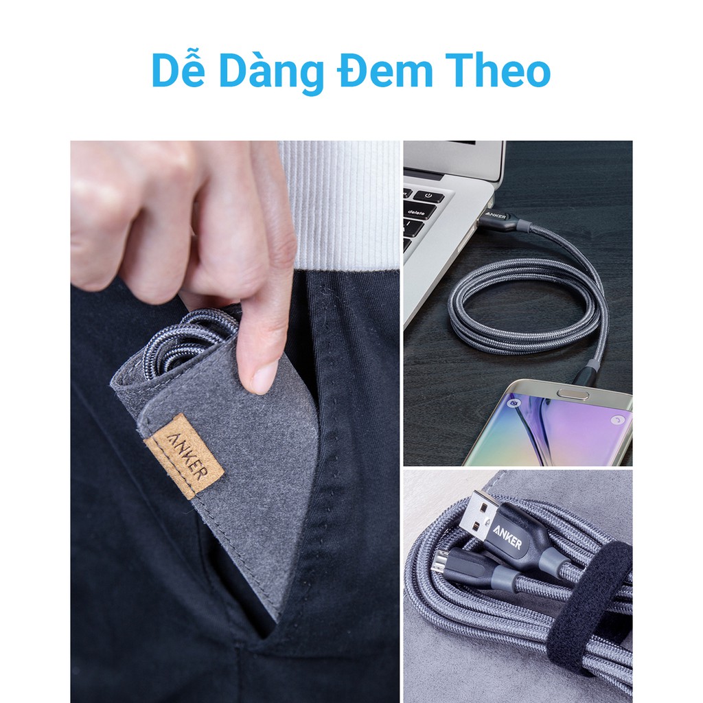 ⚡ Cáp Micro USB Powerline + có thể là chiếc cáp cuối cùng bạn sẽ cần. Cung cấp khả năng kéo dài ít nhất 5 lần so với các loại cáp khác, tự hào có một khả năng chịu uốn cong cao hơn 10 lần. Đơn giản là chưa có 1 chiếc cáp nào khác có độ bền như vậy.⚡ Độ bền đặc biệt được làm bởi một lõi sợi Kevlar, vỏ bện nylon và hàn laser chính xác. Cáp Micro USB Anker Powerline+ được thiết kế để chịu được bất kỳ giật, xoắn, kéo dài.