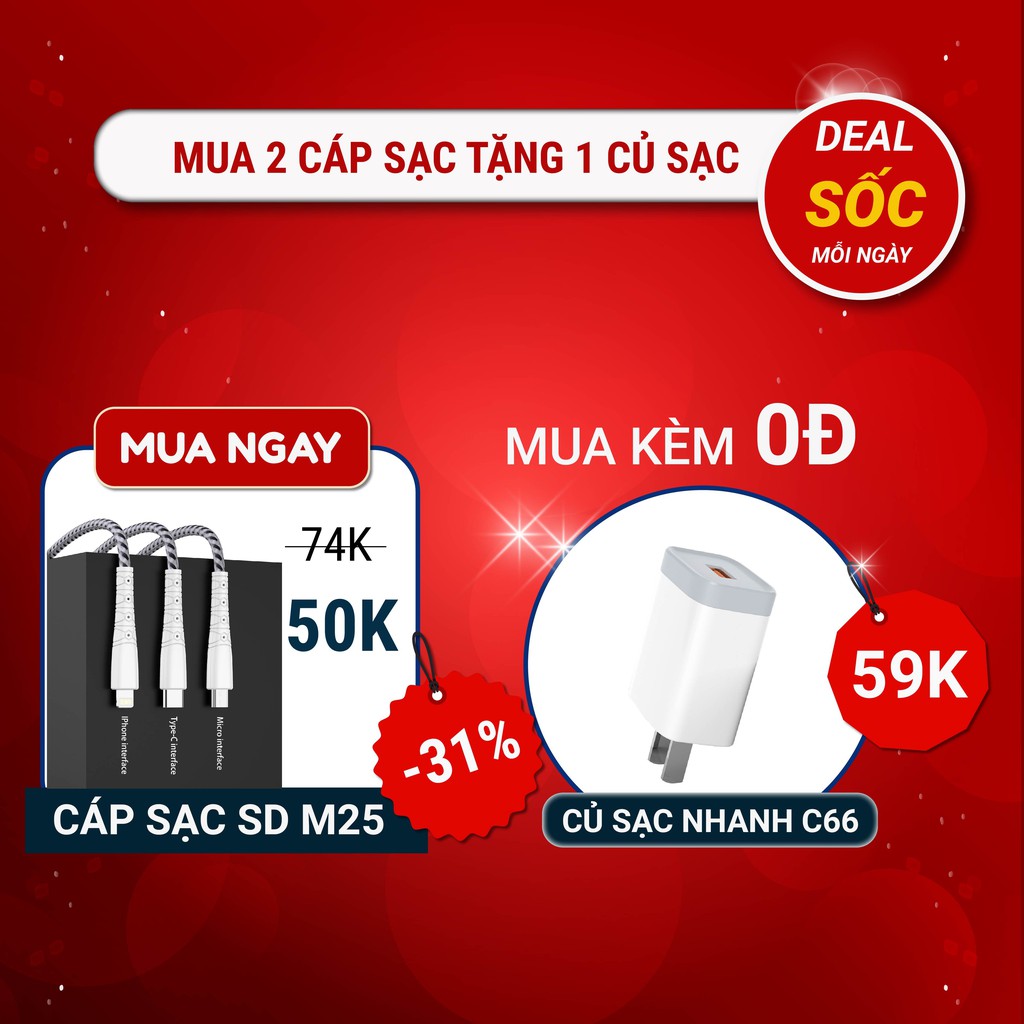 Cáp sạc chính hãng SD DESIGN M25 với thiết kế mới trẻ trung, sạc và truyền dự liệu nhanh chóng, bảo hành 1 đổi 1PHỤ KIỆN SD DESIGN - CHUYÊN SỈ LẺ GIÁ GỐC PHỤ KIỆN ĐIỆN THOẠI