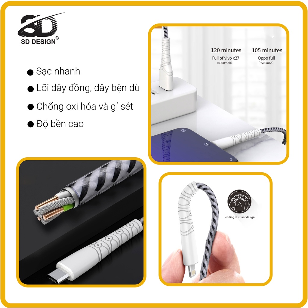 Cáp sạc chính hãng SD DESIGN M25 với thiết kế mới trẻ trung, sạc và truyền dự liệu nhanh chóng, bảo hành 1 đổi 1