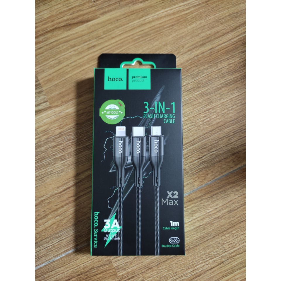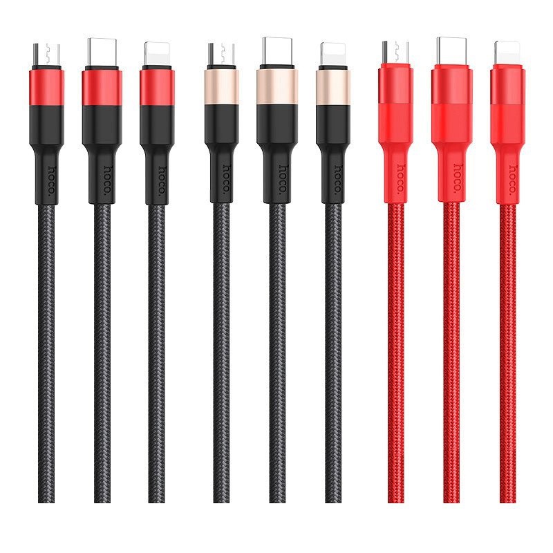 Cáp sạc HOCO X26 3 in 1 (Iphone/Android/Type-C)Cáp sạc dây dù chống đứt 3 đầu Hoco X26 Lightning+Micro+Type-C 1M