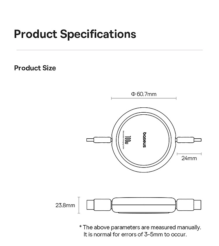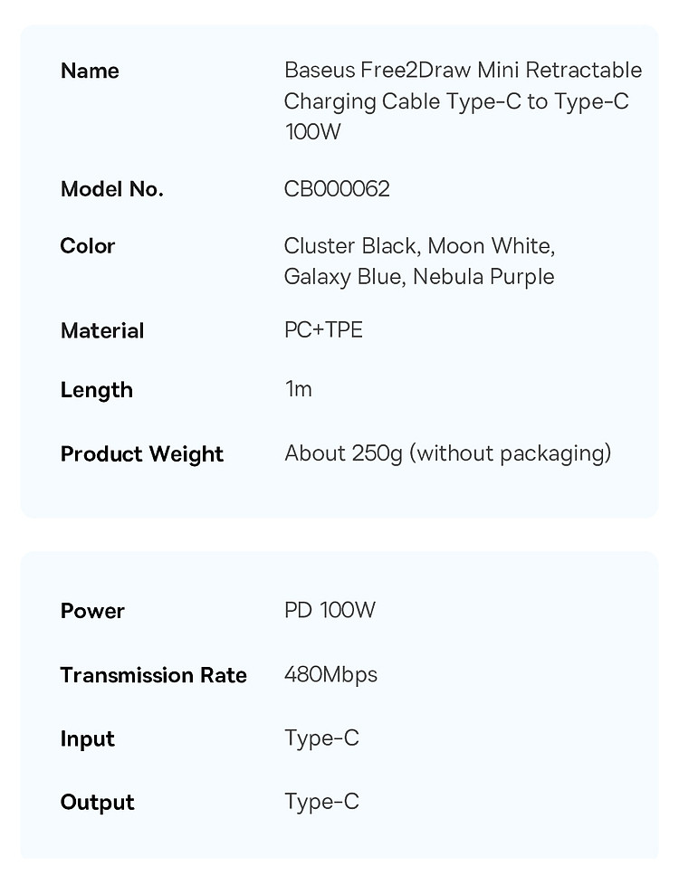 | Tên | Cáp Sạc Dây Rút C to C Baseus Free2Draw Mini Retractable Charging Cable Type-C to Type-C 100W |