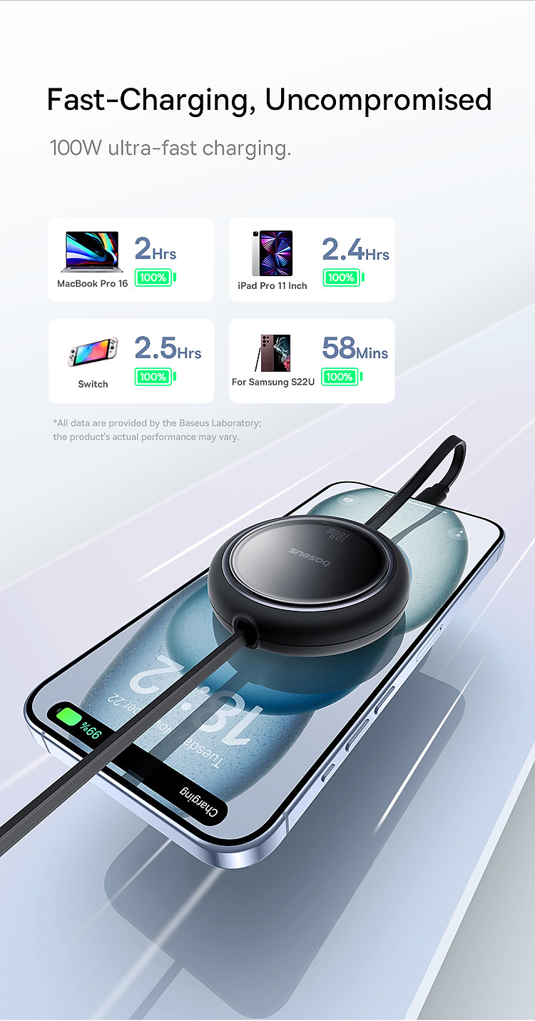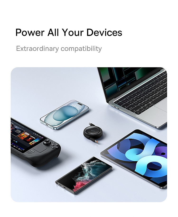 Công Suất 100W: Với công suất lên đến 100W, sản phẩm này hỗ trợ sạc nhanh và mạnh mẽ cho cả laptop và các thiết bị di động.