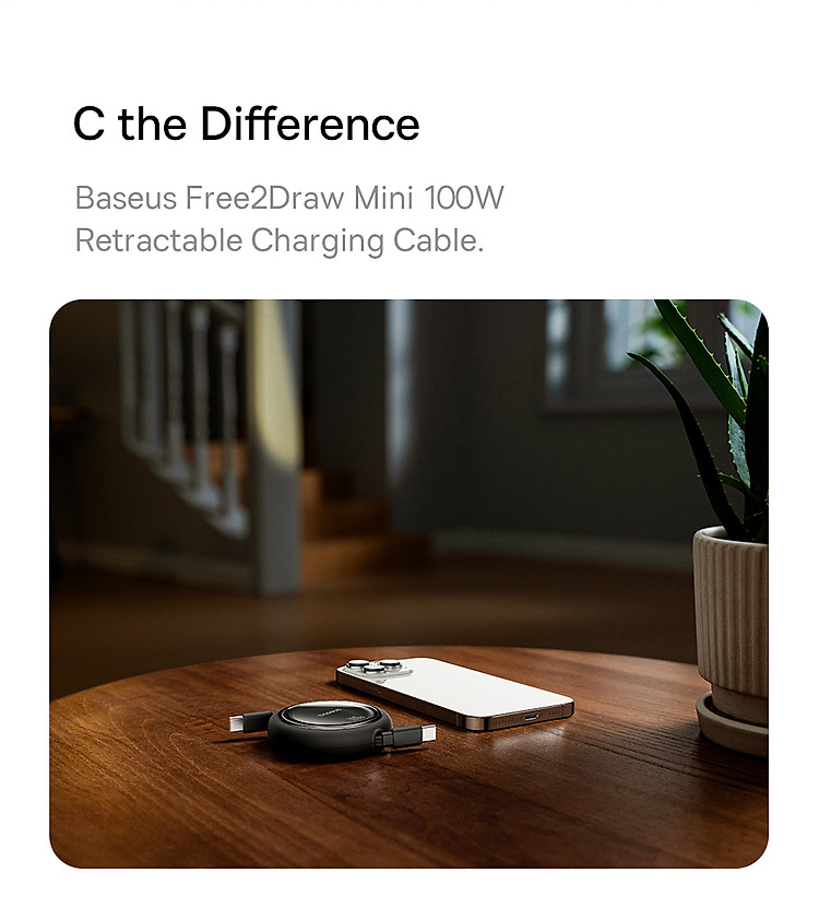 Giới thiệu Cáp Sạc Dây Rút C to C Baseus Free2Draw Mini Retractable Charging Cable Type-C to Type-C 100W (Hàng chính hãng)