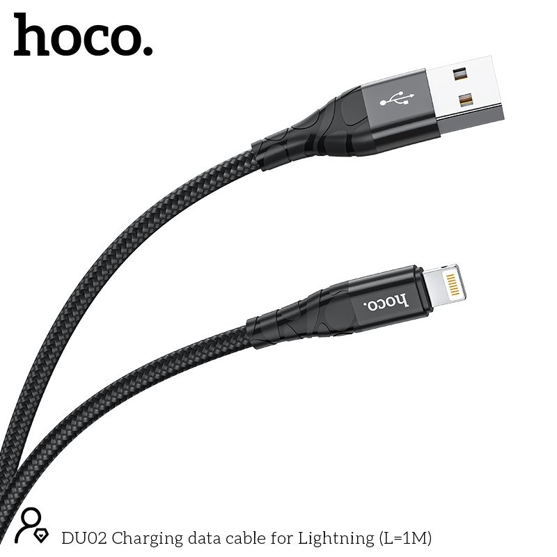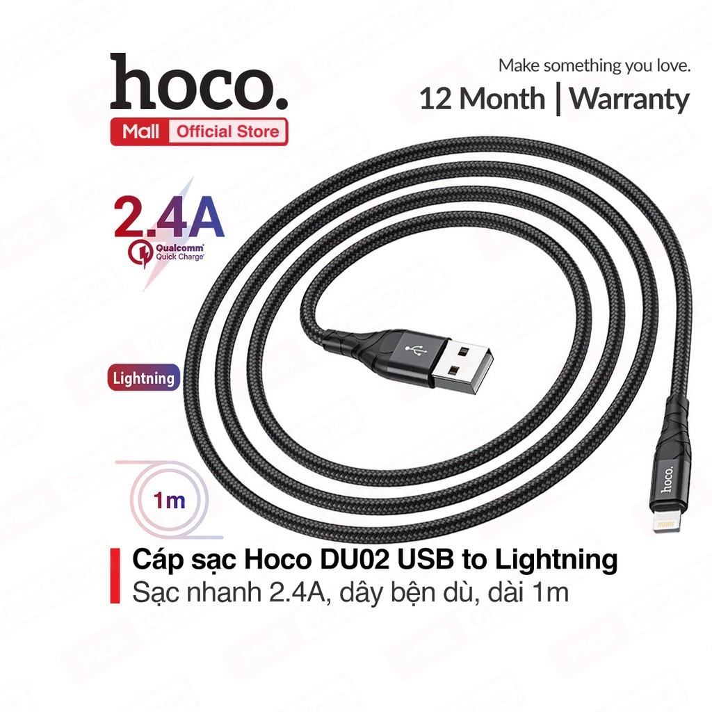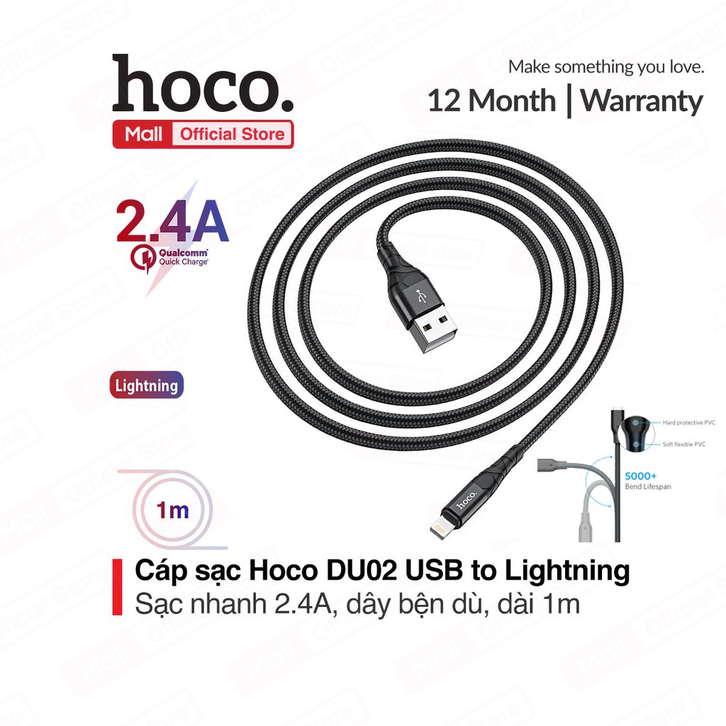 Cáp sạc Hoco DU02 USB to Lightning sạc nhanh 2.4A, dây bền dù chống đứt, dài 100cm
