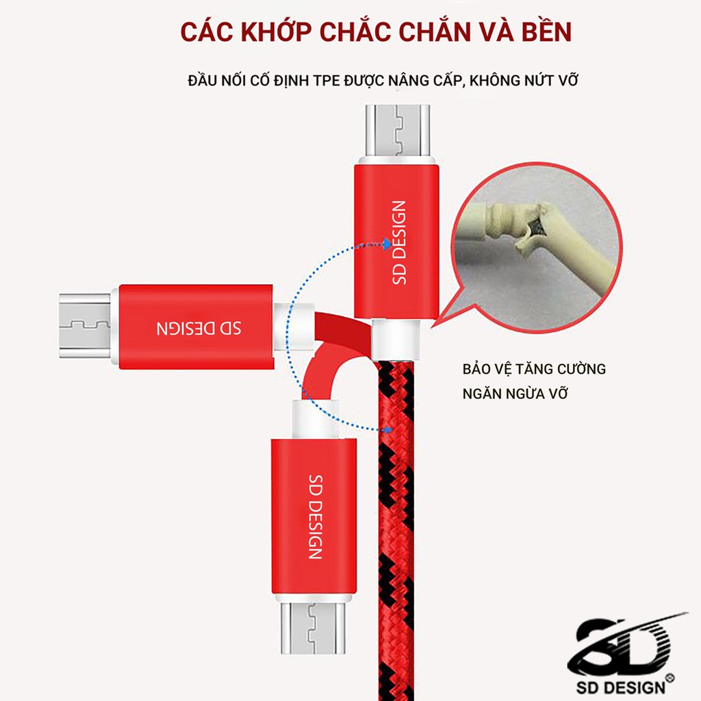 Cáp Sạc iPhone, Micro dây dù L1 chính hãng SD DESIGN xạc điện thoại ổn định siêu bền chống đứt, hỗ trợ sạc nhanh iphone, samsung, oppo, Bảo Hành 1 Đổi 1MÔ TẢ SẢN PHẨM Cáp Sạc iPhone, cáp sạc Micro Usb dây dù chính hãng SD DESIGN L1: