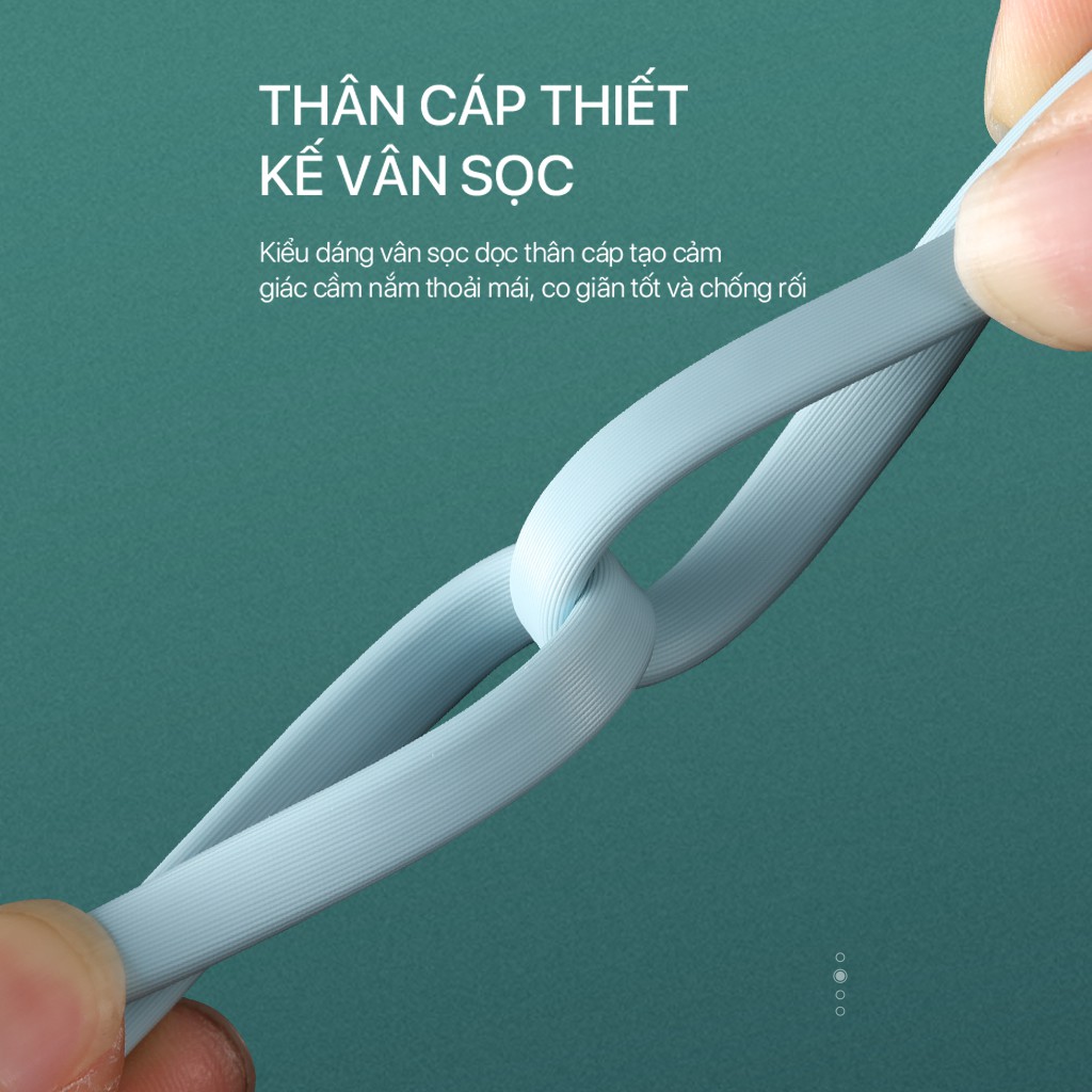 - Kiểu dáng thân cáp vân sọc tạo cảm giác cầm nắm thoải mái, co giản tốt và chống rối.