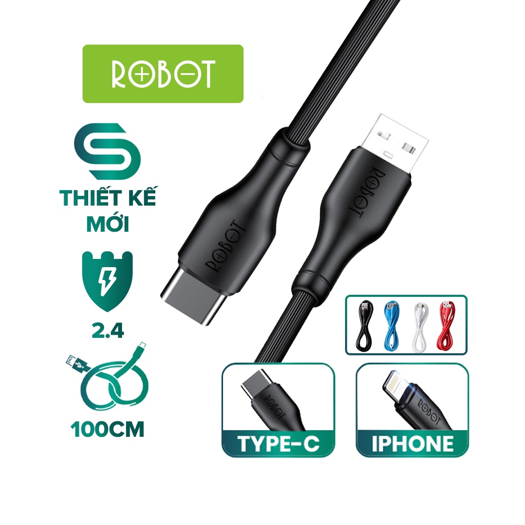 CÁP SẠC LIGHTNING/ TYPE-C 2.4A ROBOT RT-TL100 CHIỀU DÀI 1M KIỂU DÁNG CARTOON - TƯƠNG THÍCH VỚI IPHONE/ANDROID - MÀU SẮC TRẺ TRUNG BẮT MẮT - GIAO MÀU NGẪU NHIÊNSản phẩm chính hãng ROBOT