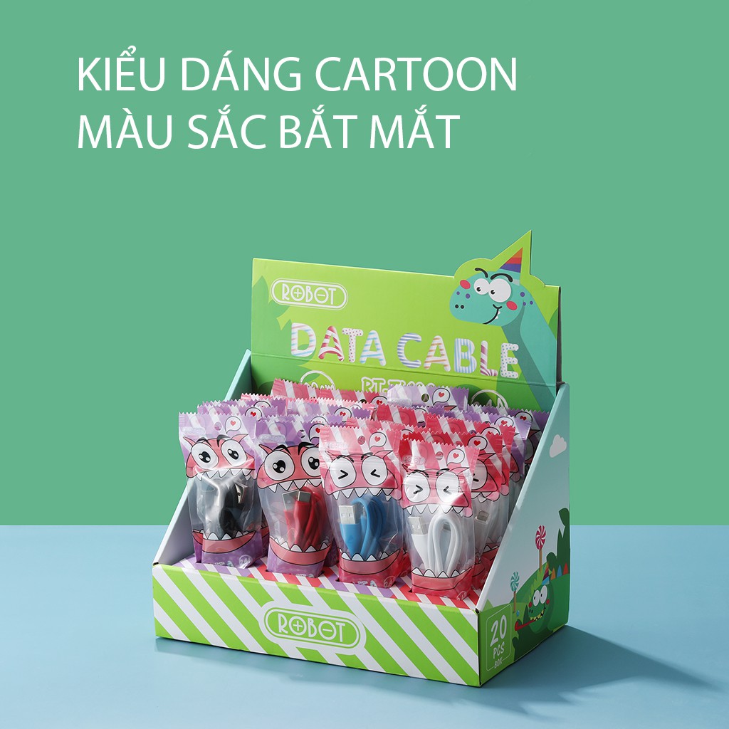 Cáp Sạc Lightning/Type-C 2.4A ROBOT RT-TL100 1m Kiểu Dáng Cartoon Dài 1m - Tương Thích Với iPhone Android