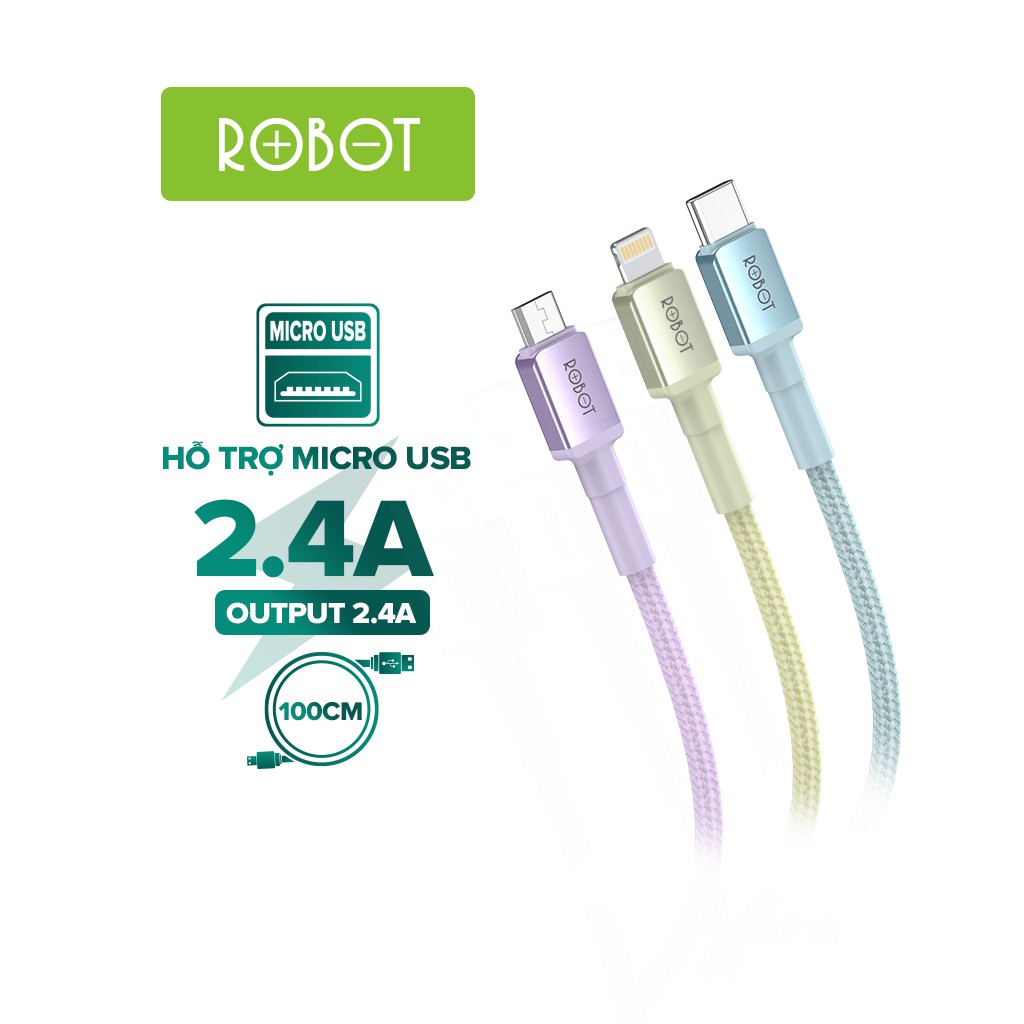 CÁP SẠC LIGHTNING/ TYPE-C/ MICRO ROBOT - CHIỀU DÀI 1M - CHẤT LIỆU DÂY BỆN DÙ CHỐNG RỐI - TƯƠNG THÍCH VỚI CÁC THIẾT BỊ APPLE/ ANDROIDSản phẩm chính hãng ROBOT