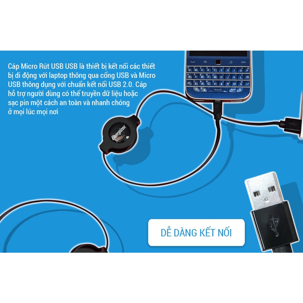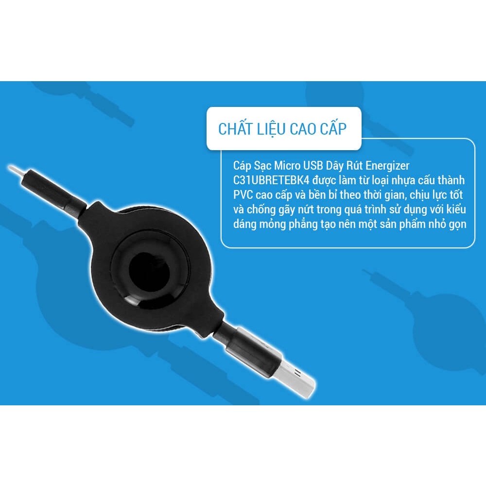 Giới thiệu Cáp Sạc Micro USB Dây Rút Energizer C31UBRETEBK4 (80cm)