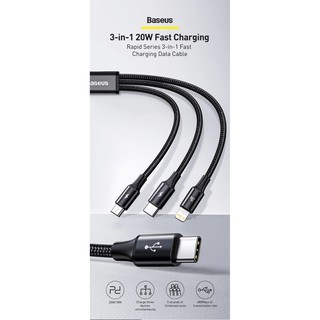 Cáp sạc nhanh 20w 3 đầu type c to lightning typec micro dây bọc dù chống gãy gập độ dài 1,5m chính hãng baseus