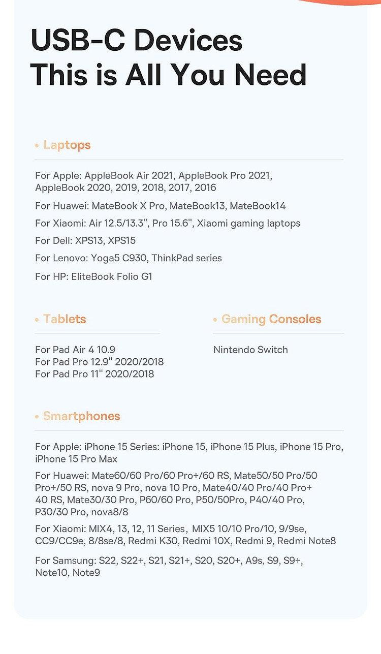 Tương Thích Rộng Rãi: Cáp tương thích với nhiều loại thiết bị sử dụng cổng USB Type-C như điện thoại di động, máy tính bảng, laptop, và nhiều thiết bị khác.