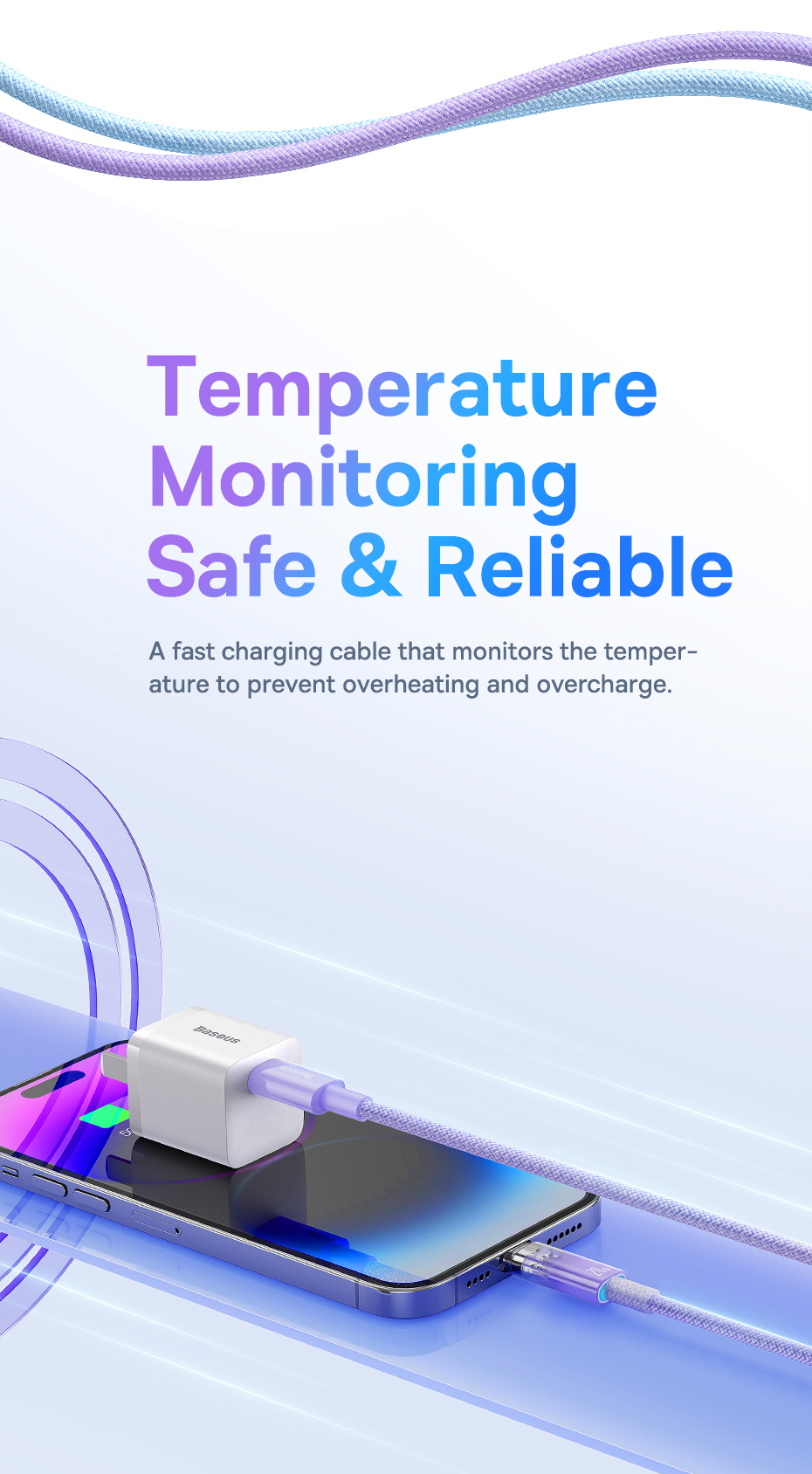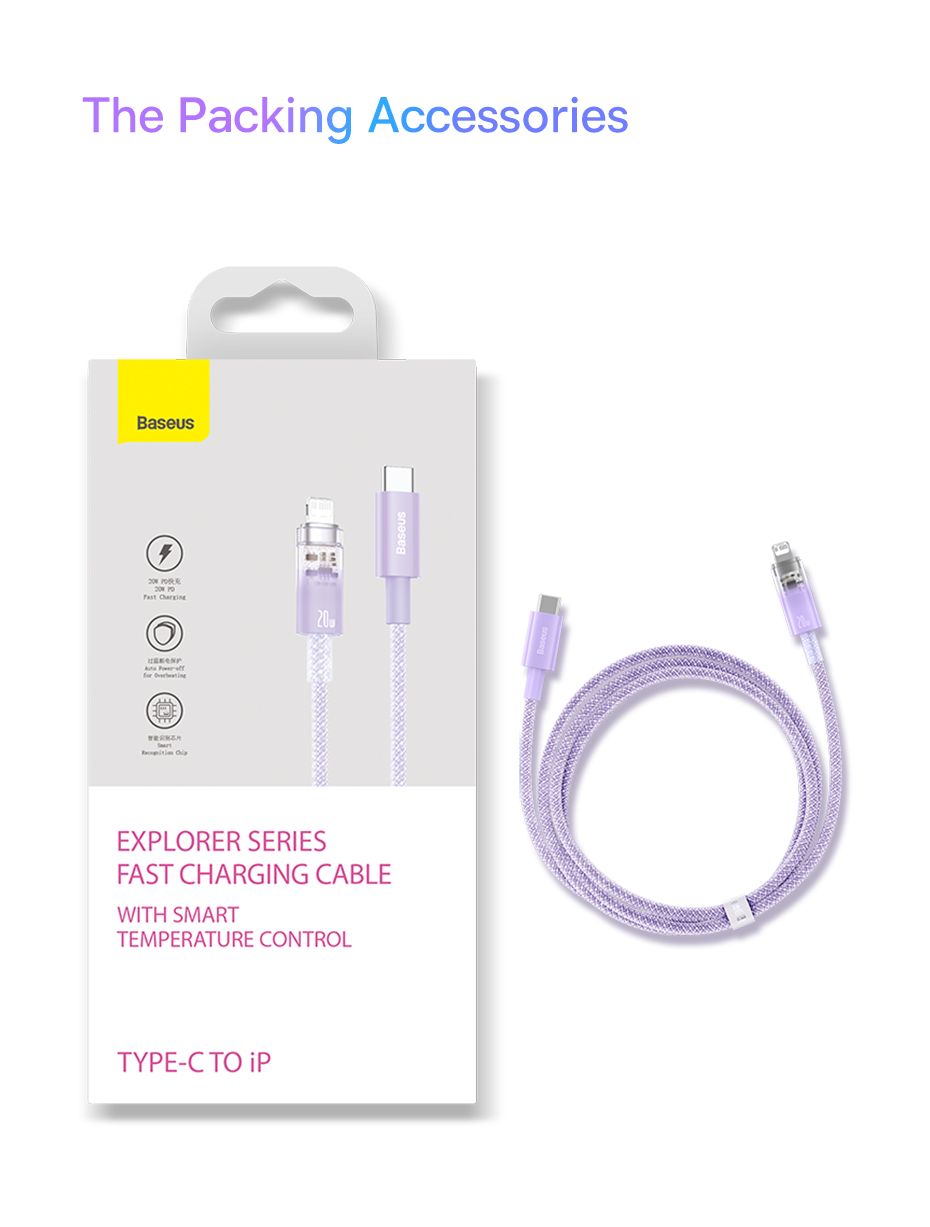 Cáp sạc nhanh C to iP Baseus Explorer Series Fast Charging Cable with Smart Temperature Control Type-C to iP 20W là một sản phẩm chất lượng cao được thiết kế để sạc nhanh và đồng thời bảo vệ thiết bị của bạn.