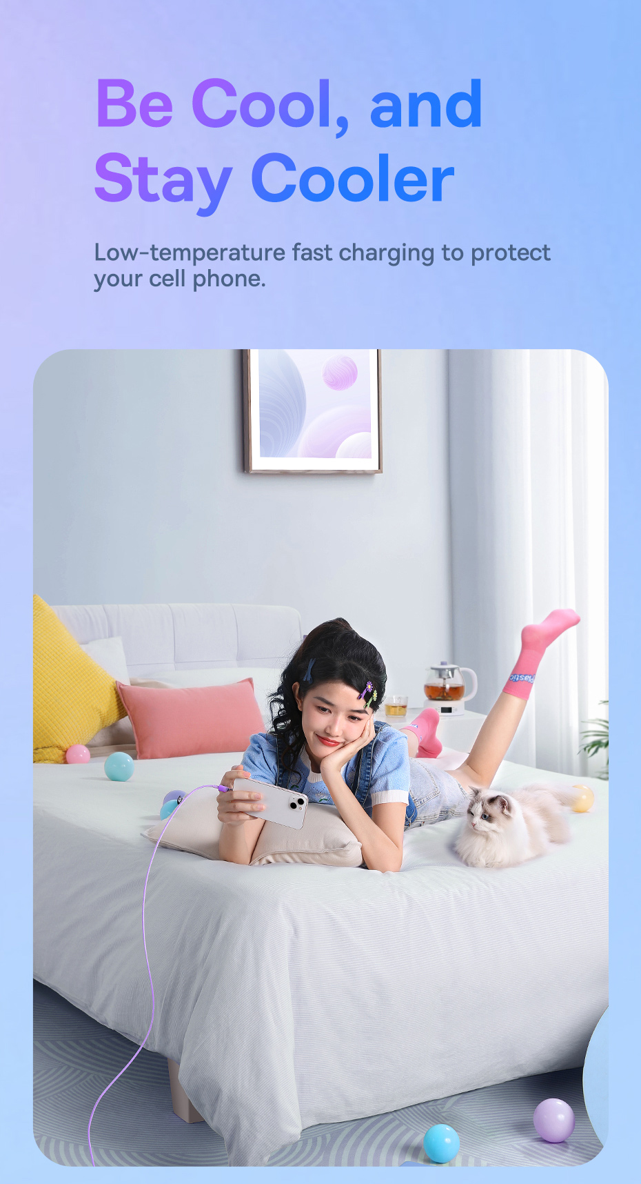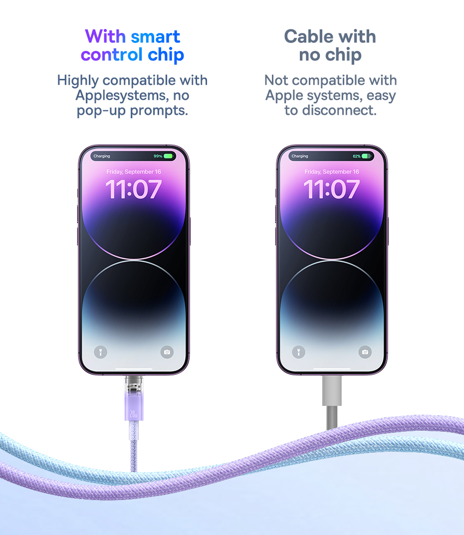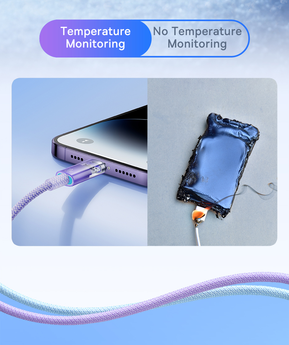 Sản phẩm này được trang bị cổng kết nối Type-C to iP, cho phép bạn sạc nhanh cho các thiết bị iPhone, iPad hoặc iPod với công suất lên đến 20W. Ngoài ra, tính năng kiểm soát nhiệt độ thông minh giúp điều chỉnh độ nóng của cáp sạc để đảm bảo an toàn cho thiết bị sạc của bạn.