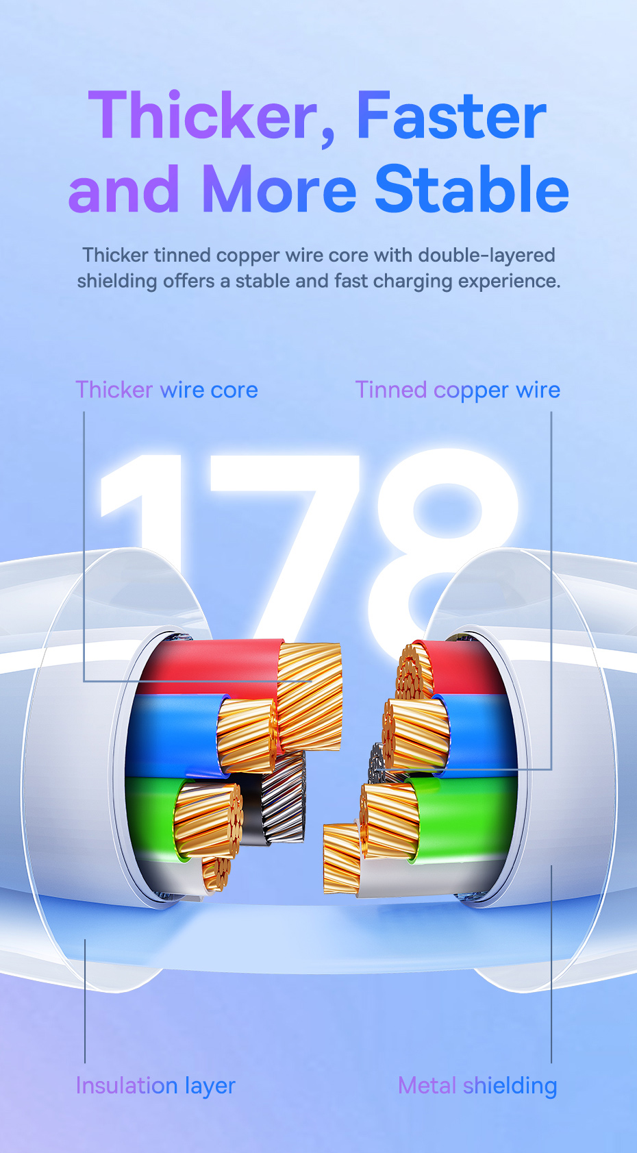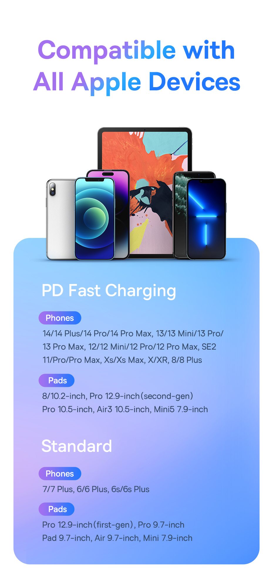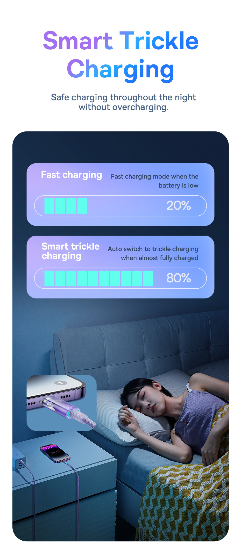 Sản phẩm này được trang bị cổng kết nối Type-C to iP, cho phép bạn sạc nhanh cho các thiết bị iPhone, iPad hoặc iPod với công suất lên đến 20W. Ngoài ra, tính năng kiểm soát nhiệt độ thông minh giúp điều chỉnh độ nóng của cáp sạc để đảm bảo an toàn cho thiết bị sạc của bạn.