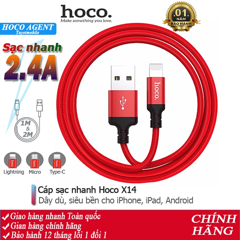 Điện Thoại & Phụ Kiện > Phụ kiện > Cáp, sạc & bộ chuyển đổi > Cáp & Bộ chuyển đổi di động || Cáp sạc nhanh Hoco X14 siêu bền sạc full iPhone/ Android/ iPad, dây truyền tải dữ lệu dài 1m, 2m - Chính hãngCòn hàng