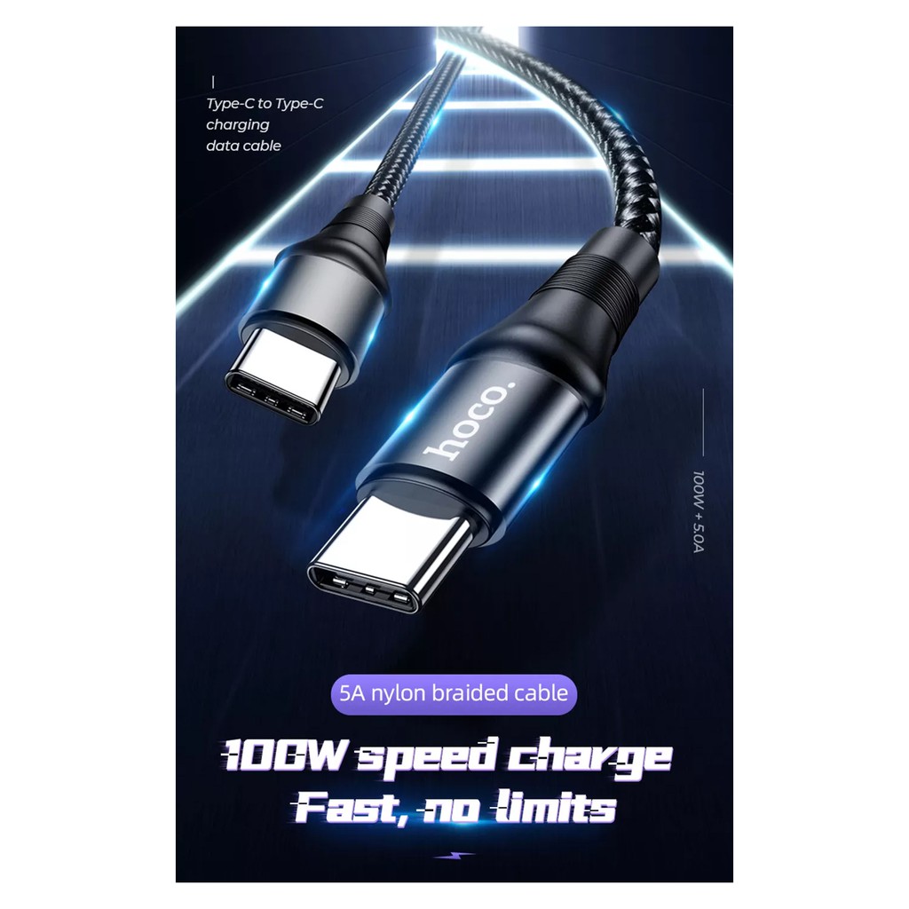 Cáp sạc nhanh HOCO X50 Type-C to Type-C, sạc nhanh 20V/5A, công suất 100W, dây bọc dù, đầu sạc chống gãy gập, dài 2m