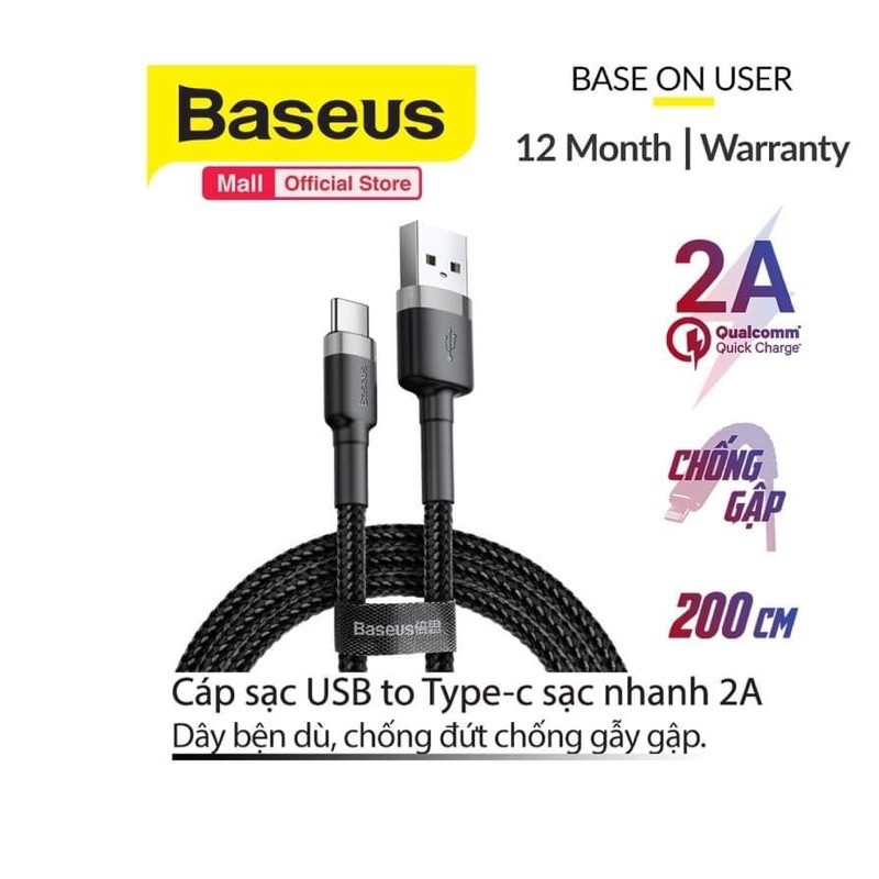 Cáp sạc nhanh iphone ipad và type c cho samsung oppo chính hãng baseus dây bện dù chắc chắn hỗ trợ truyền dữ liệu dài 2M