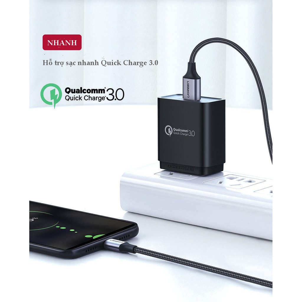 Cáp sạc nhanh Micro USB 2.4A Ugreen US290 độ dài từ 0.25m đến 2m, vỏ sợi bện siêu bền - Hàng phân phối chính hãng