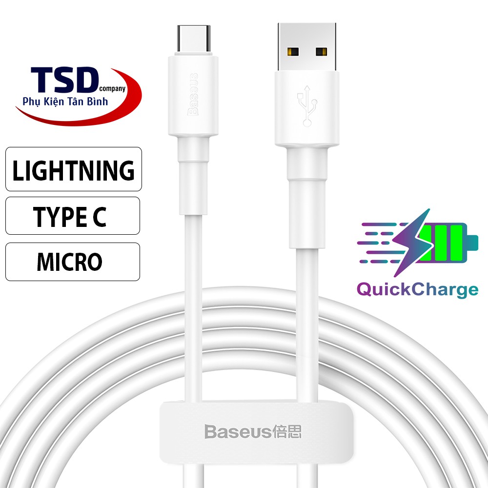 Cáp Sạc Nhanh Siêu Bền Baseus Mini White Dùng Cho Smartphone, Tablet (Quick Charging & Sync Data TPE Cable)- SHOP CÓ PHÂN LOẠI ĐỦ 3 CỔNG SẠC, QUÝ KHÁCH TỰ XEM MÁY MÌNH DÙNG CỔNG NÀO THÌ CHỌN LOẠI TƯƠNG ỨNG NHÉ!