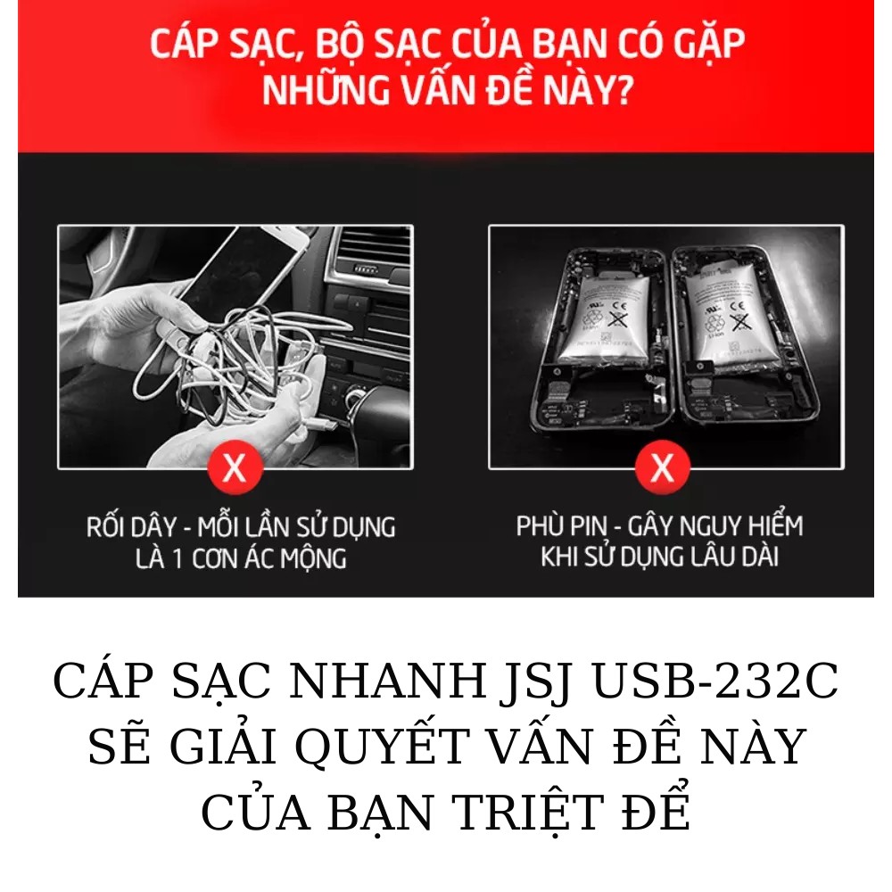 + Dây cáp sạc nhanh JSJ-232C được bảo vệ bởi lớp nhựa TPE bền bỉ.