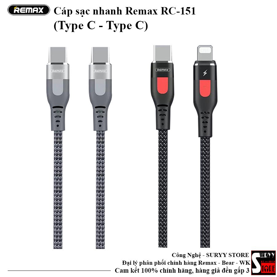 Cáp sạc nhanh Type C - Type C Remax RC-151, chất liệu cao cấp, sạc nhanh ổn định - Bảo hành 6 tháng