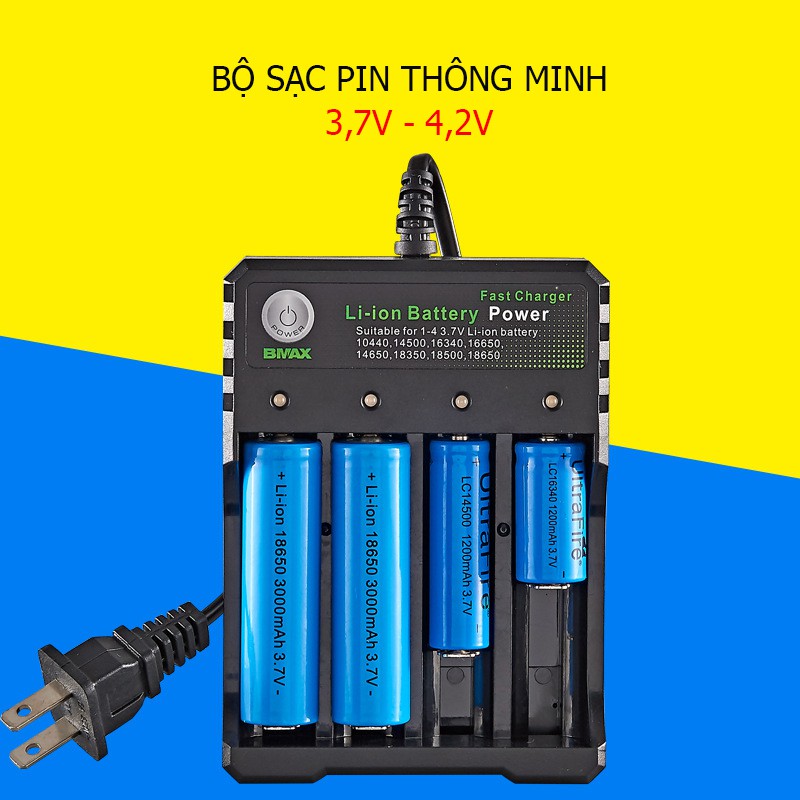 LƯU Ý:- BỘ SẠC CHỈ DÙNG CHO PIN LI-ON 3.7V: 18650, 18500, 18350, 16650, 16340, 14500, 10440