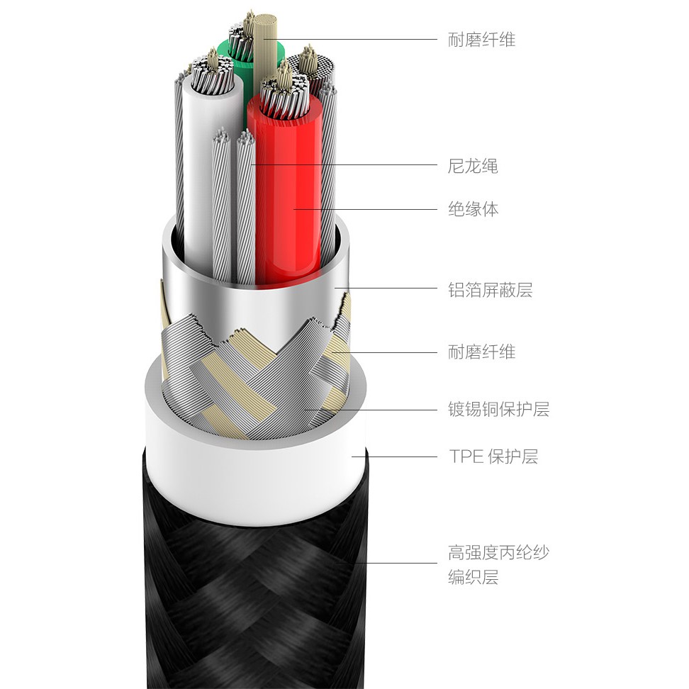 Ở phần tiếp xúc giữa phần tay cầm cáp và thân dây là một đoạn nối bằng chất liệu TPE có độ đàn hồi cao nhằm hạn chế tình trạng gãy gập ở vị trí tiếp xúc nhạy cảm này. Phần tay cầm được làm từ hộp kim mạ anodized cho lớp finish lỳ, không bị oxy hóa xỉn màu hay bong tróc theo thời gian. Đầu type C được thiết kế tiêu chuẩn với độ chính xác cao phù hợp cho nhiều thiết bị khác nhau.