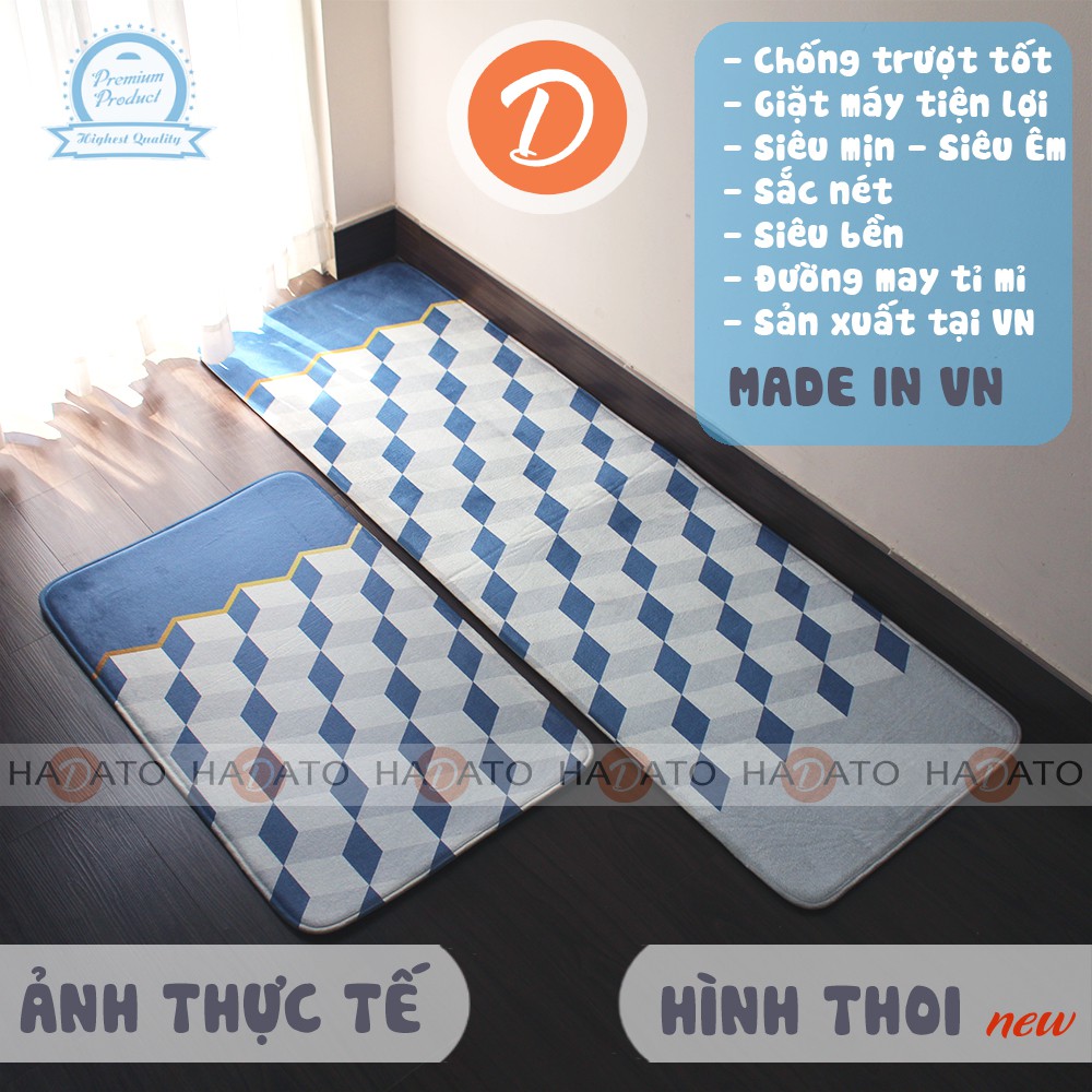 THẢM CHỈ 1 TẤM THEO PHÂN LOẠI KHÁCH CHỌN. KHI MUỐN MUA LÀM BỘ THẢM BẾP THÌ QUÝ KHÁCH CHỌN 2 SẢN PHẨM. VÍ DỤ: - size 40*60 cm + size 40*120 cm💎THẢM HADATO: là thảm có xuất xứ Việt Nam, do công ty Hadato phối hợp Carmi ( công ty chuyên sản xuất thảm xuất qua Hàn Quốc ) sản xuất. Thảm cao cấp hơn so với thảm TQ: